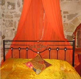 Medieval is one of the most privileged rooms. Go back to the centuries, stay in a “Medieval” style room with stone sculptured walls and arches, and with iron chandeliers that entail candles…without missing anything from the luxuries of our century. The Medieval room is situated near our Garden and Veranda and has its own area where one can relax while reading a book and enjoying the sea view of the port side - with the cruise ships lying around at night all lighted and in their own beauty.